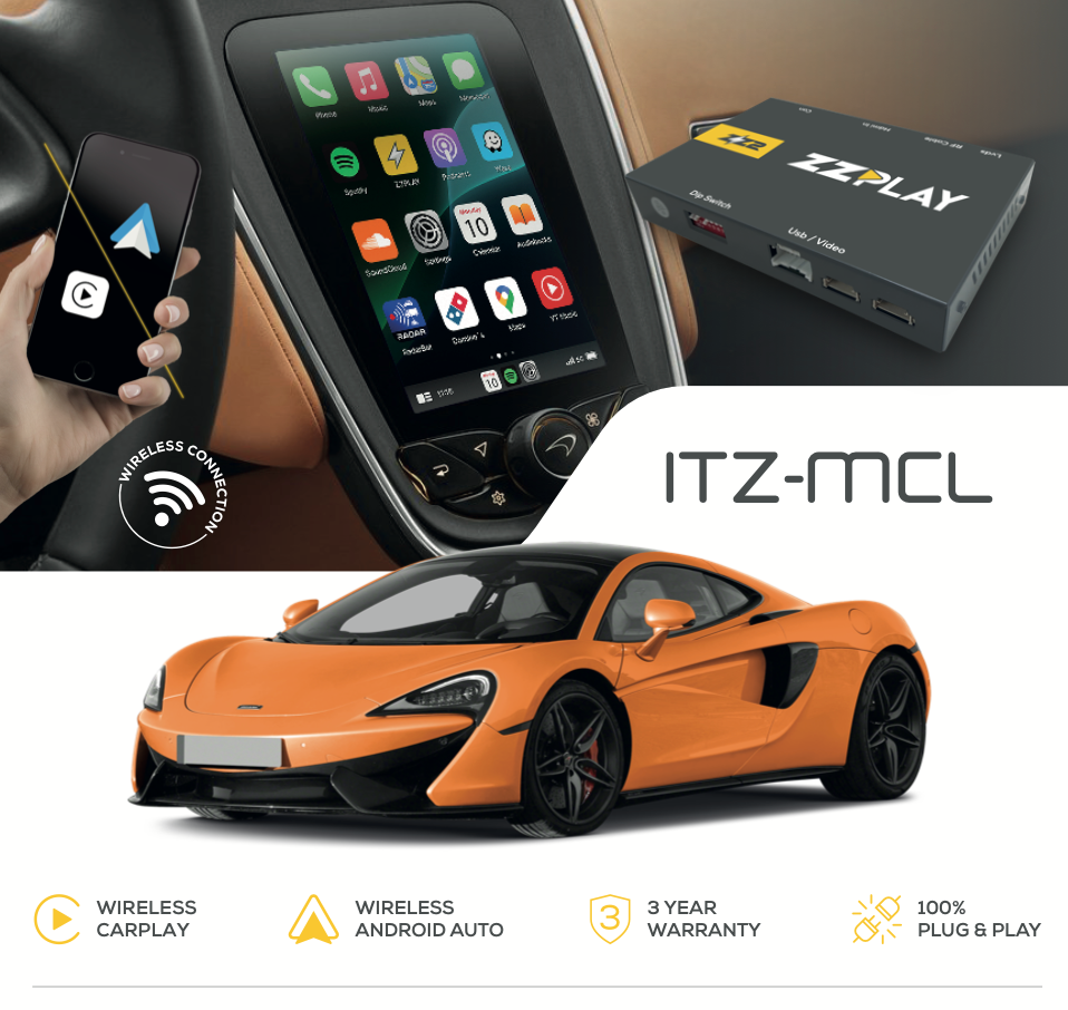 Wireless CarPlay/Android Auto, Camera and A/V interface compatible with McLaren