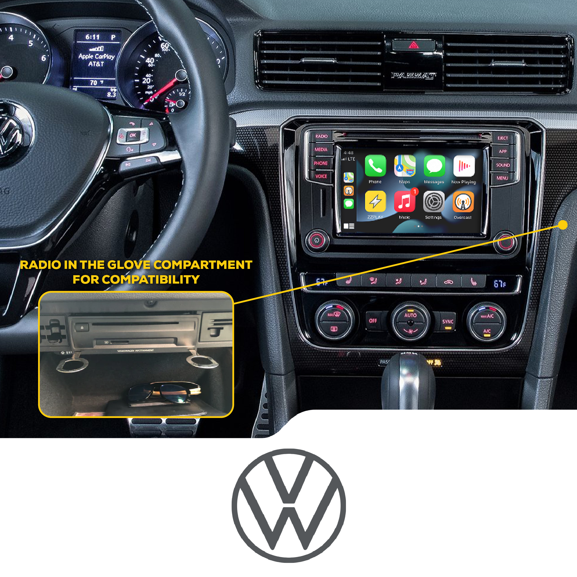 Wireless CarPlay/Android Auto, Camera and A/V interface compatible with select VW equipped with the MQB system.