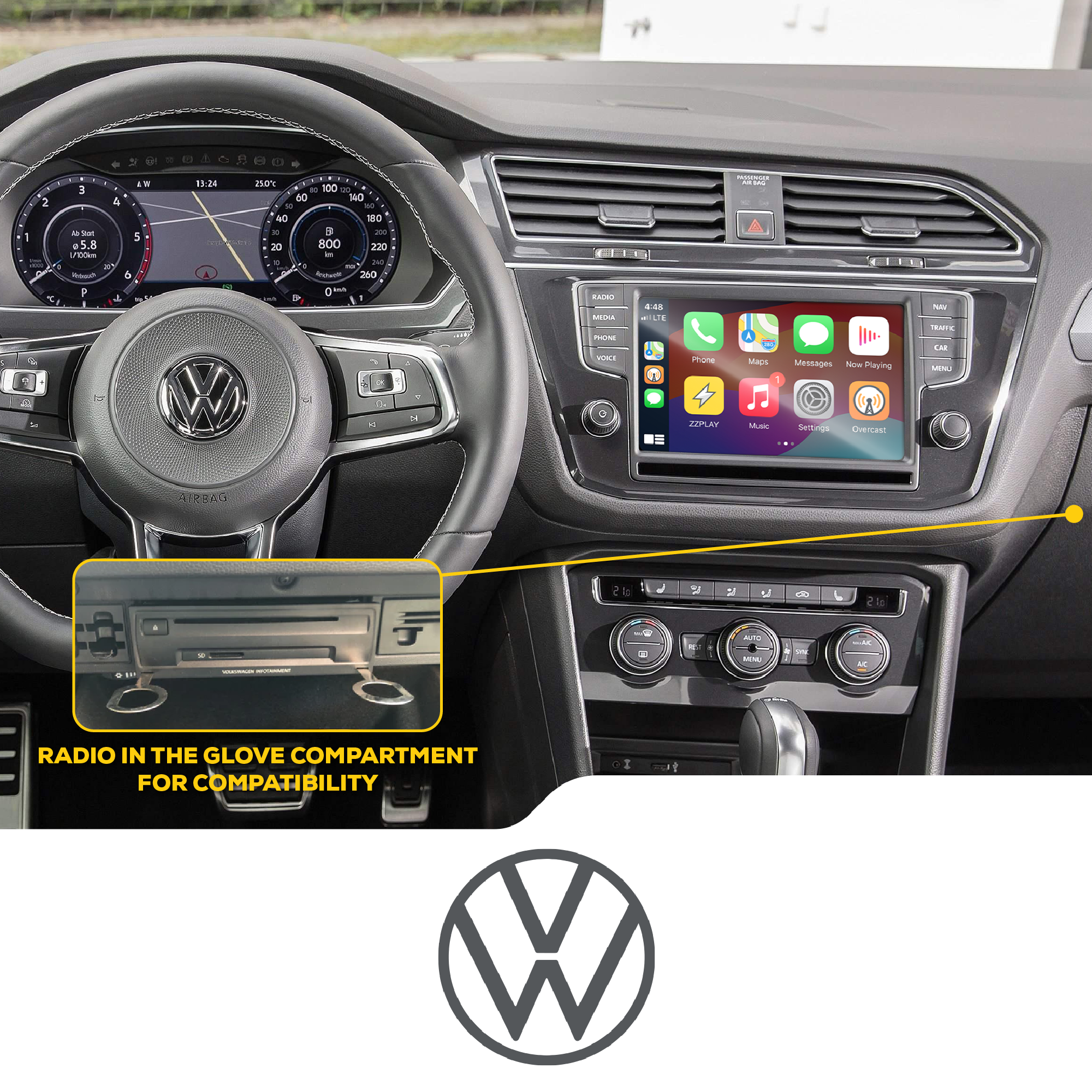Wireless CarPlay/Android Auto, Camera and A/V interface compatible with select VW equipped with the MQB system.